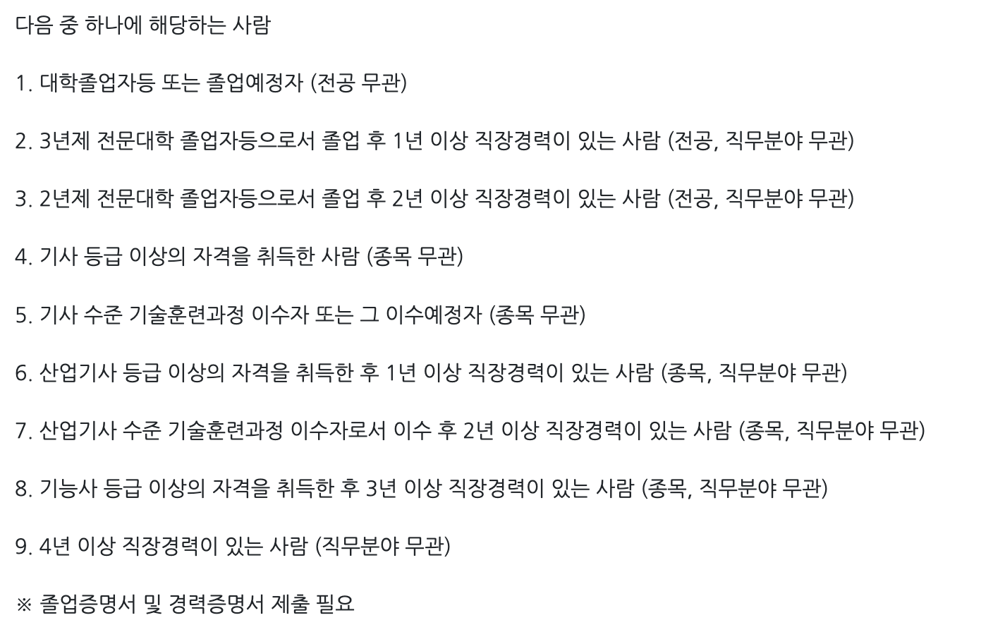 자격증 취득을 위해서 먼저 응시자격을 갖추어야 합니다. 다음 중 하나의 자격에 해당해야합니다.